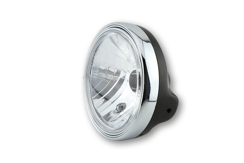 Désignation : Feu avant LTD H4 HIGHSIDER smart – 7 pouces – verre gaufré – fixation latérale – homologué E – chromé – à l'unité