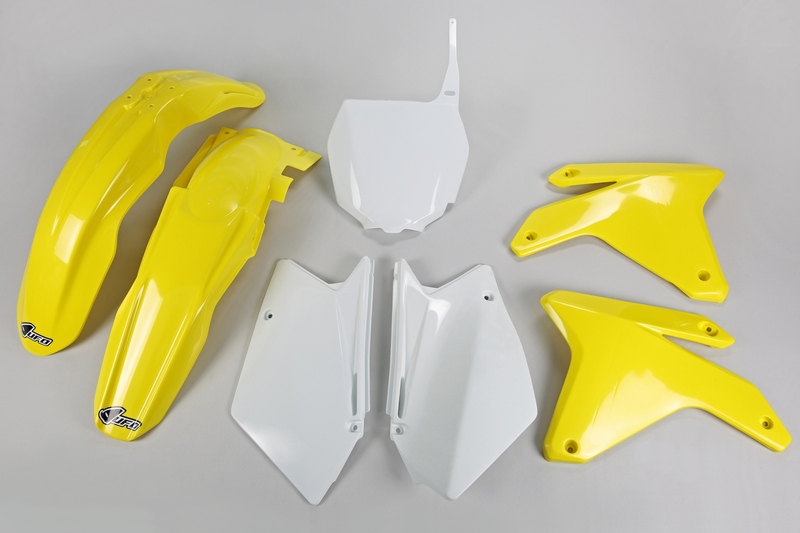 Désignation : Kit plastique UFO couleur origine jaune/blanc Suzuki RM125/250