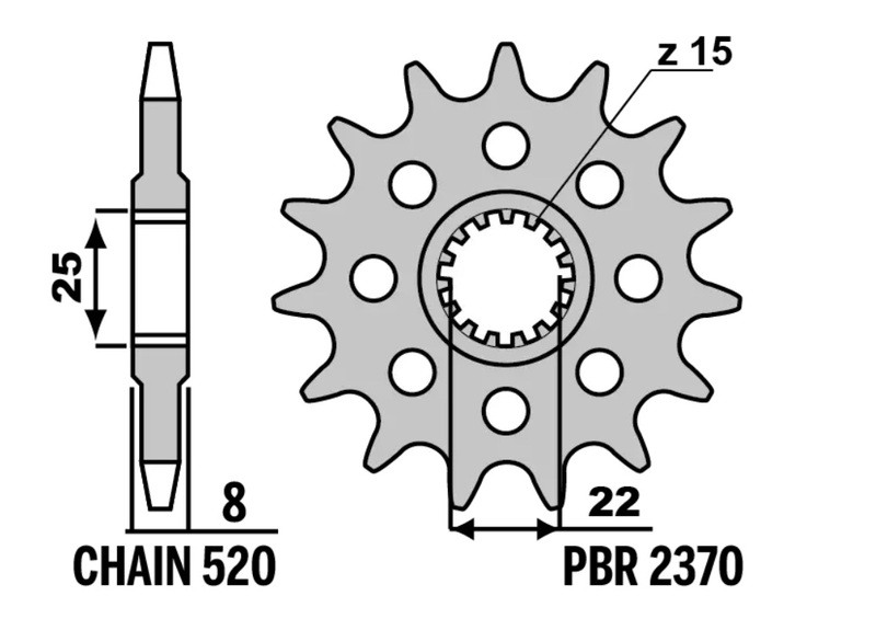 Désignation : Pignon PBR acier standard – 520